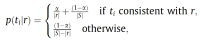 Under Model 1, a rule had likelihood zero if any string in the set T was inconsistent with it. With any appreciable level of input uncertainty, this likelihood function would result in nearly all rules having probability zero. To deal with this issue, we assume in Model 2 that learners know that their memory is fallible, and that strings may be misremembered with probability 1 - a.